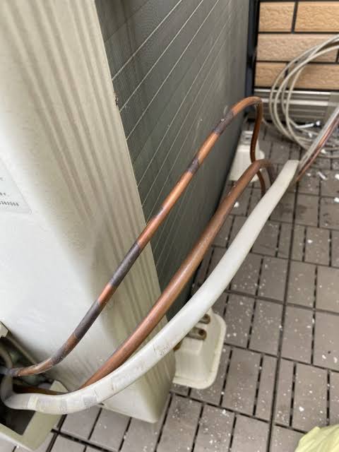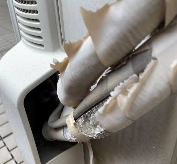 年数が経つと、エアコンの屋外カバーや配管のテープが徐々に劣化していきます。それに伴い、カバーやテープで保護している断熱材が劣化する恐れがあります。 断熱材が劣化すると冷暖房能力が十分に発揮されません。