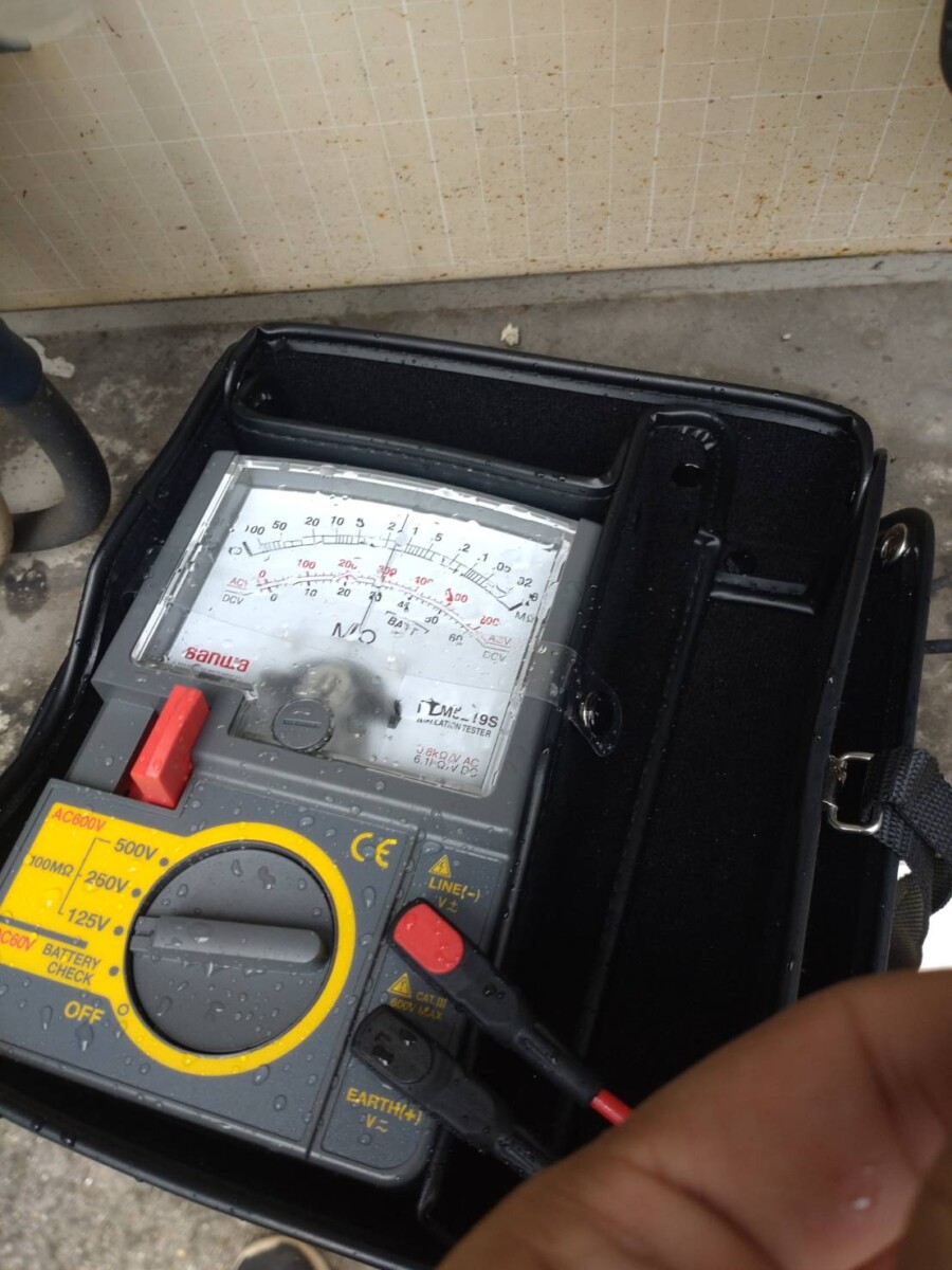 計器は、MAXまで触れてはいなかったのですが、漏電の原因の可能性が高いと判断しました。